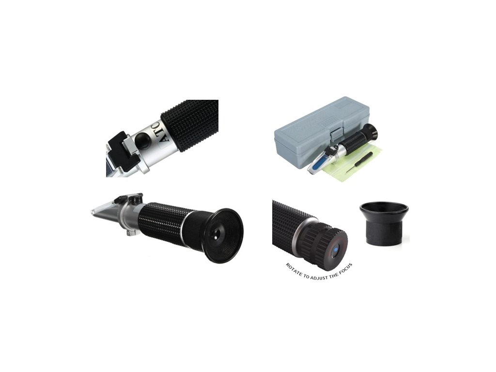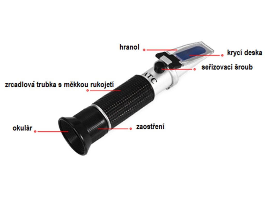 Refraktometr funguje na principu lomu světla a pro přesné měření je vybaven automatickou teplotní kompenzací (ATC).